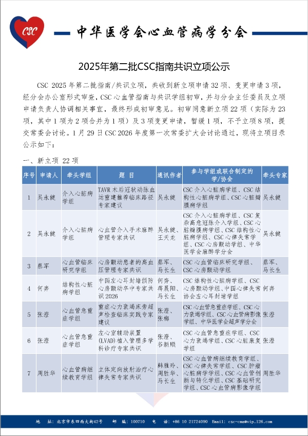 2025年第二批CSC指南共识立项公示